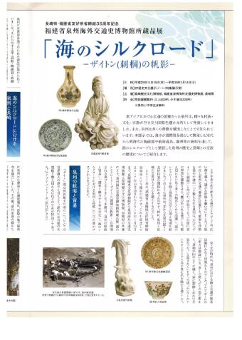 为纪念福建省与日本长崎县缔结友好省县关系35周年,加深两地友好关系,助力“海上丝绸之路”对外宣传,应日本长崎历史文化博物馆特别邀请,泉州海外交通史博物馆16日在长崎举办“刺桐帆影——泉州海外交通史博物馆‘海上丝绸之路’藏品展”。