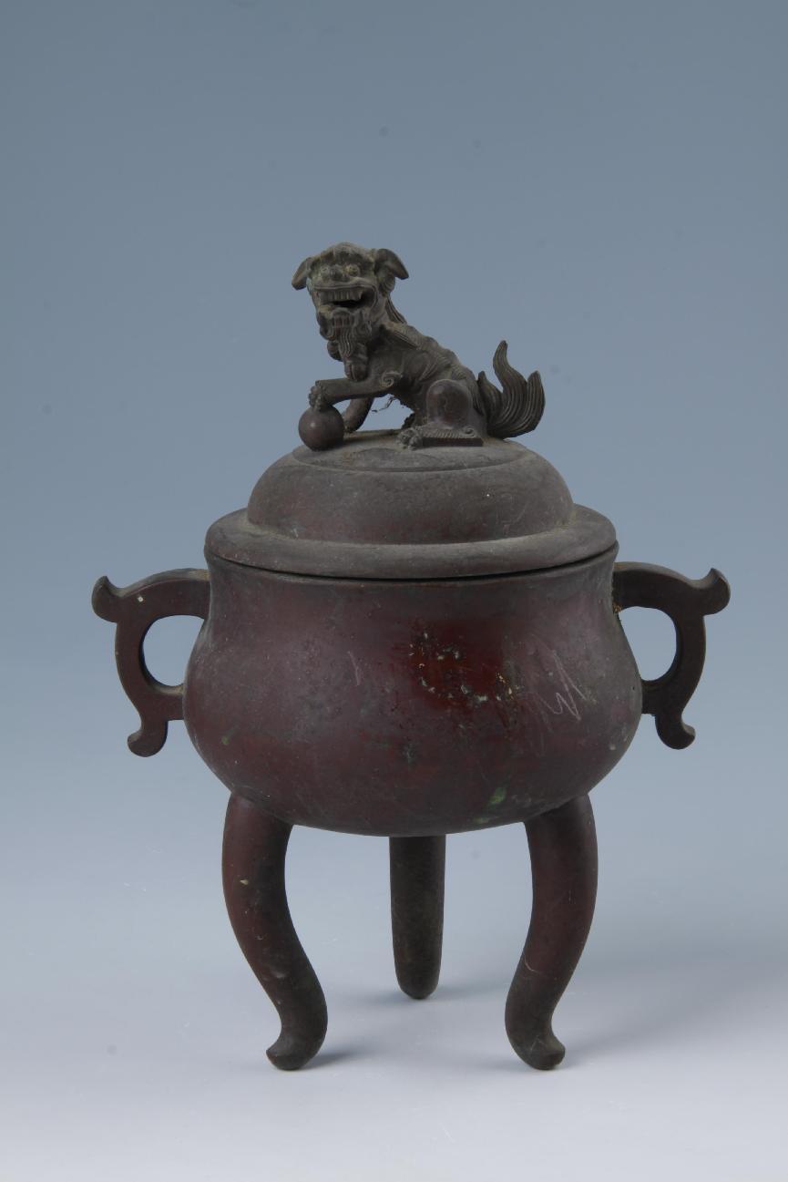 清仿宣德狮钮双耳三足铜熏炉