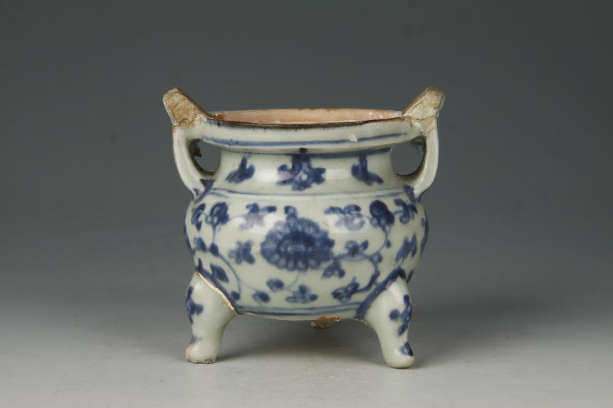 明安溪窑青花花卉纹冲耳三足炉
