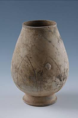 唐青釉刻莲瓣纹瓶