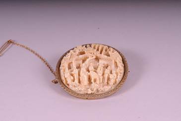 【象牙雕人物纹胸针】
