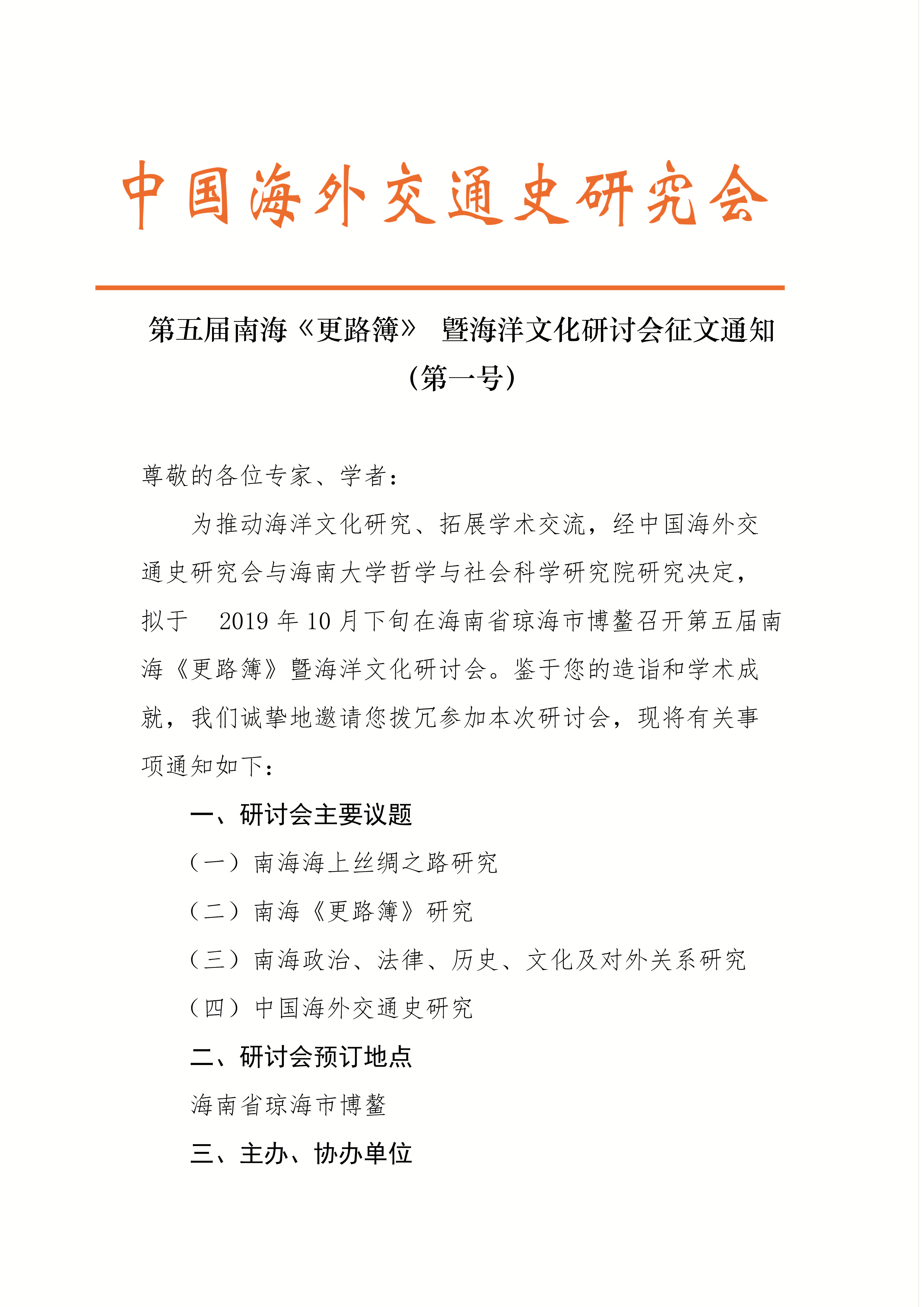第五届南海《更路簿》 曁海洋文化研讨会征文通知
